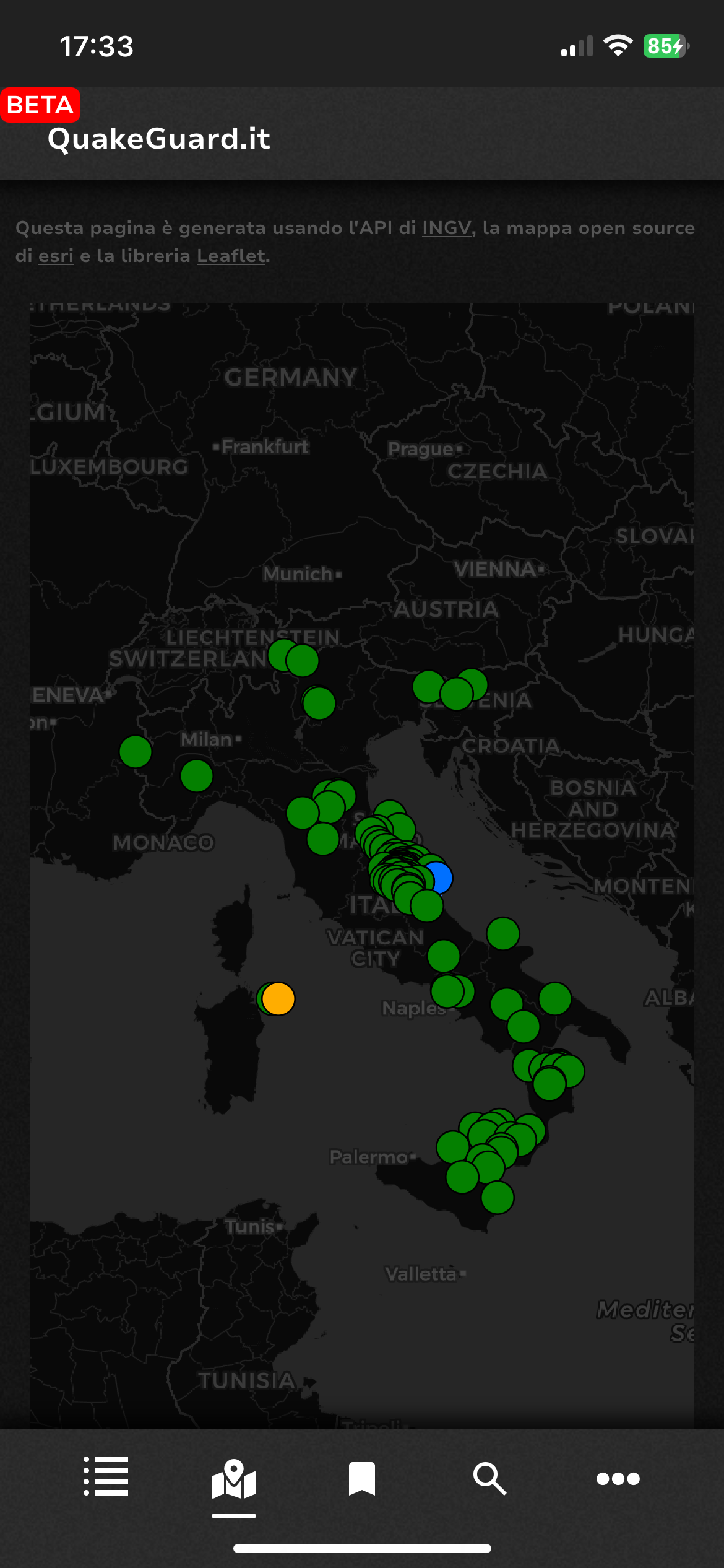 Con QuakeGuard rimani sempre aggiornato sugli utlimi terremoti. Non c'è bisogno di download perché QuakeGuard è una WebApp subito disponibile, intuitiva e facile da usare. I dati sono verificati e provengono dall'INGV.